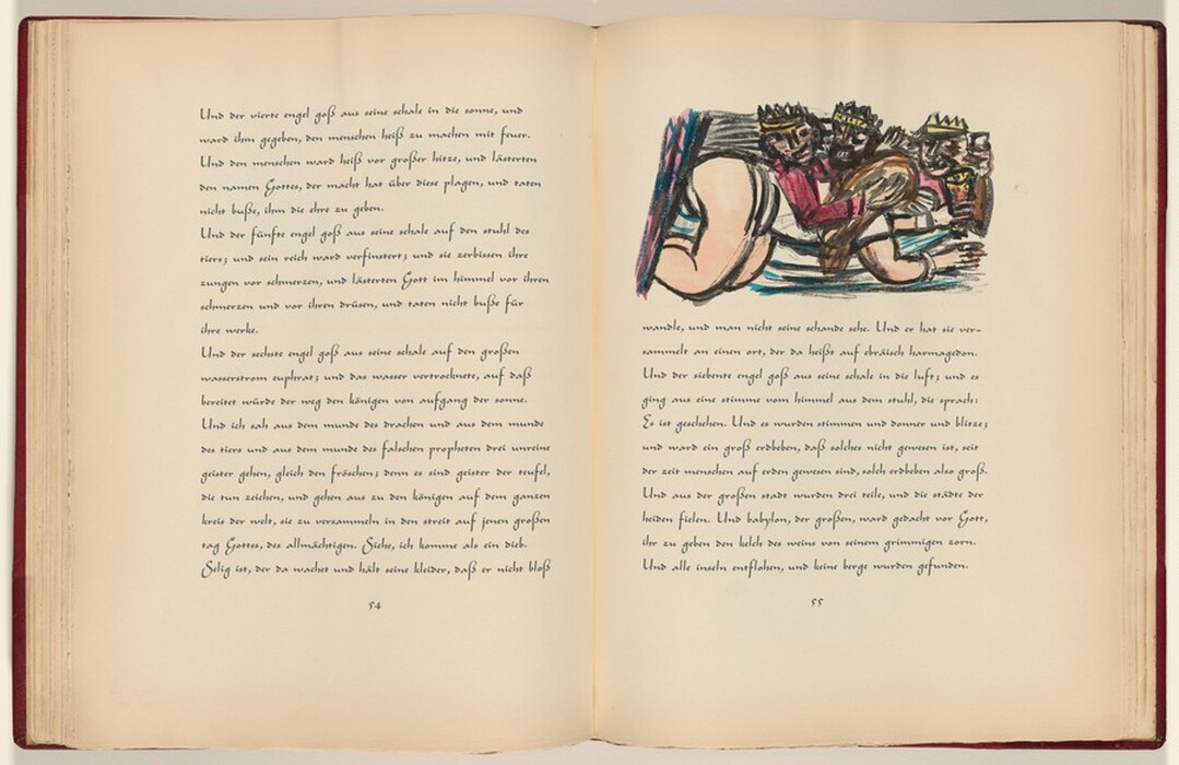 Johannes, Offenbarung, Kapitel 17, Verse 1 und 2 (John, Revelation, Chapter 17, Verses 1 and 2) (in-text plate, page 55) from Apokalypse (Apocalypse)