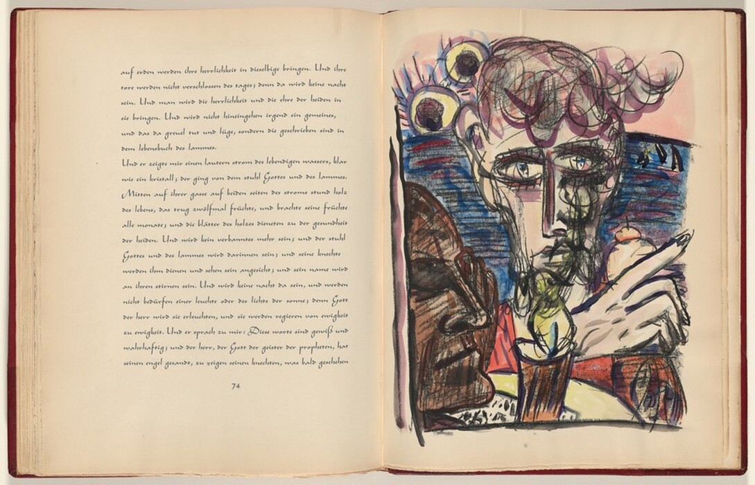 Johannes, Offenbarung, Kapitel 13, Verse 1 und 2 und 11-14 (John, Revelation, Chapter 13, Verses 1 and 2 and 11-14) (plate, page 44) from Apokalypse (Apocalypse)