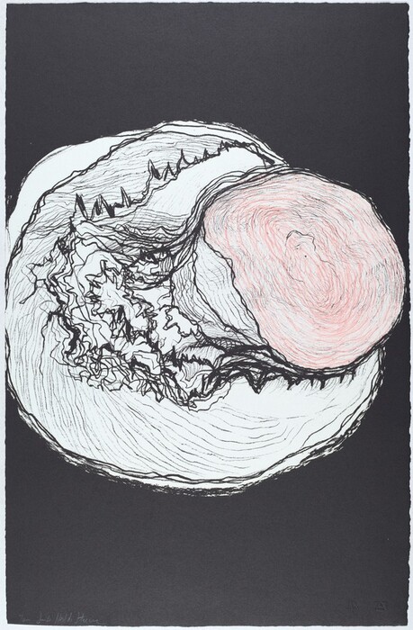 Hedda Sterne, Tamarind Institute, Untitled, 1967, lithograph (aluminum and stone) in pink and black on Copperplate Deluxe paper, Gift of Dorothy J. and Benjamin B. Smith, 1984.34.870