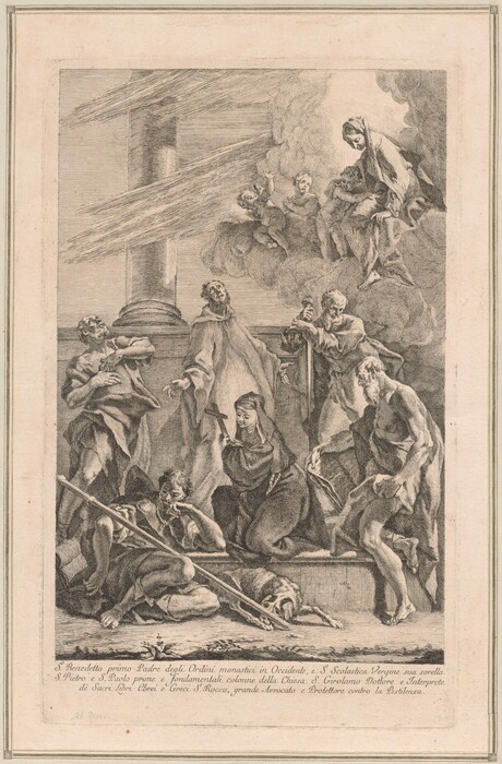 The Madonna and Child with Two Angels and Saints Scholastica, Benedict, Roch, Peter, Paul and Jerome