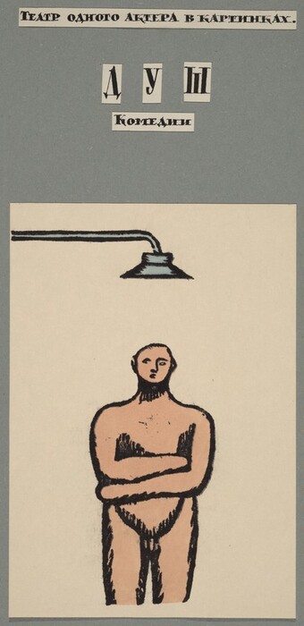 Ilya Kabakov, Preface, c. 1970, woodcut in black touched with watercolor on wove paper; laid down on gray paper, Gift of Elaine and James D. Wolfensohn and The Dunlevy Milbank Foundation, 1993.25.1